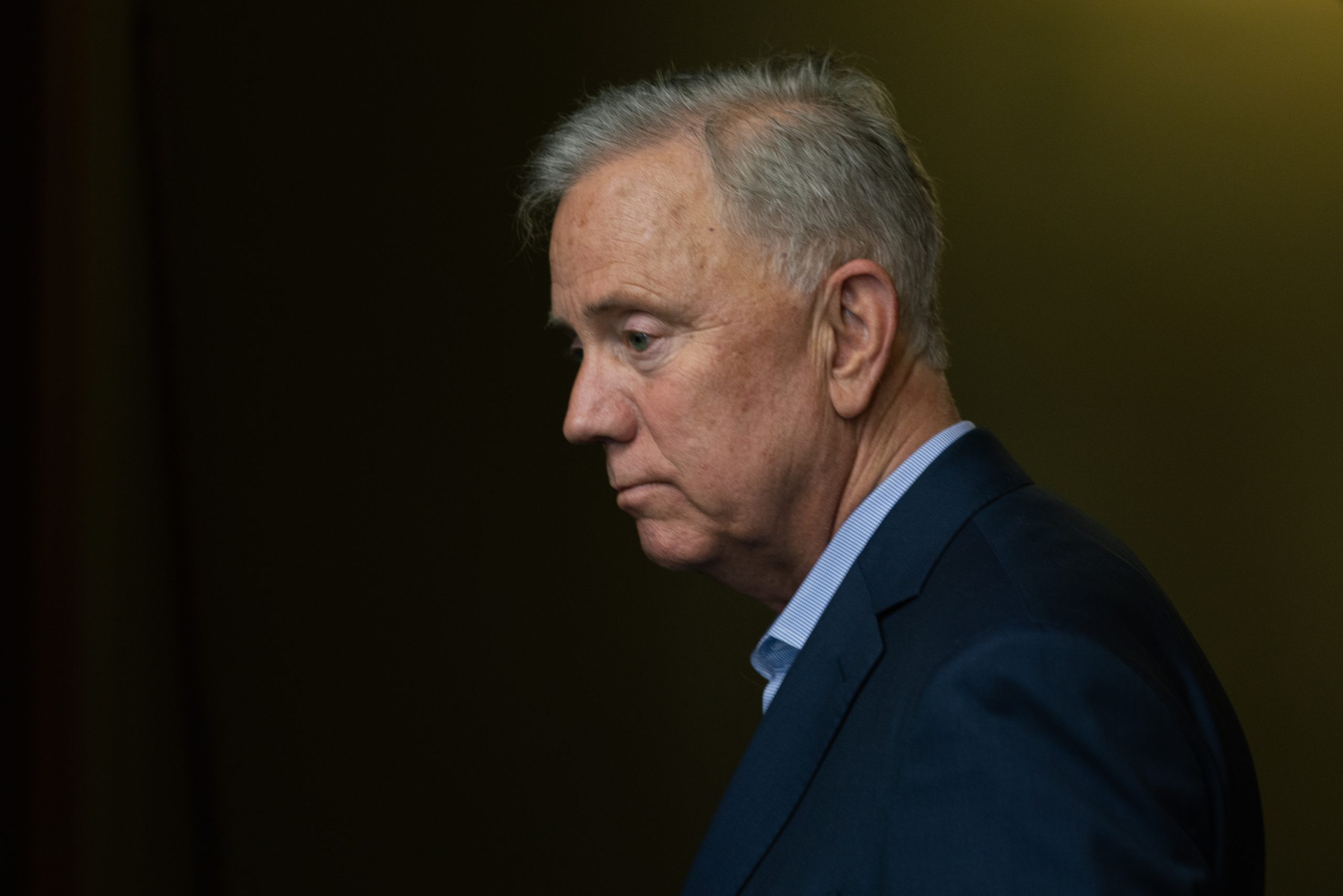 Gov. Ned Lamont listens to a reporter after a press conference on May 14, 2025. Gov. Ned Lamont listens to a reporter after a press conference on May 14, 2025. Credit: Shahrzad Rasekh / CT Mirror