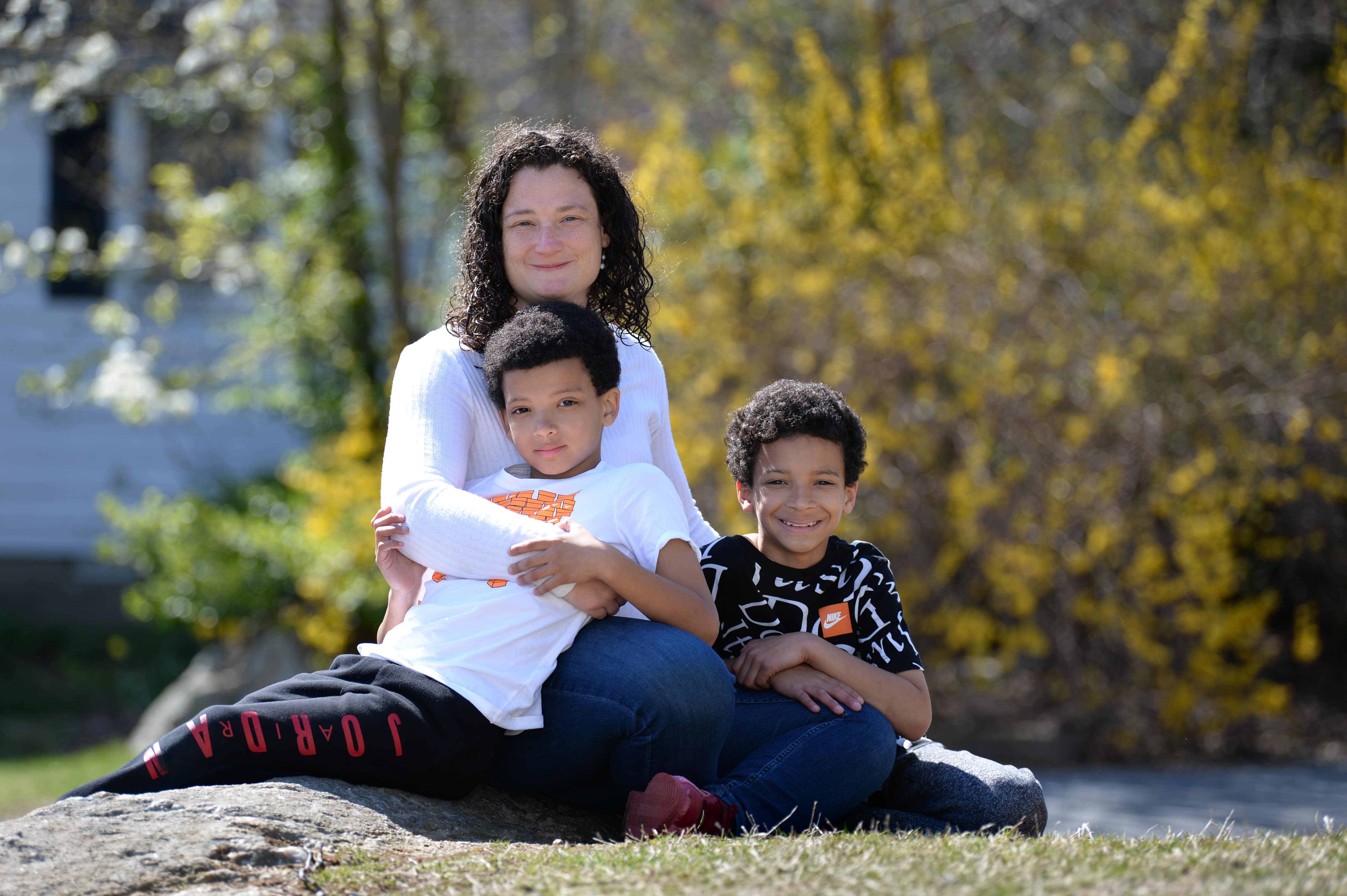 Mara Rabinowitz lives in Fairfield with her two boys, Jack, 8, (left) and Jordan, 10 (right.) Rabinowitz is a bilingual coach for the West Haven school system and is juggling the demands of teaching remotely from home and managing her boy’s distance learning while schools are closed due to the COVID-19 pandemic. But she’s managing to do her job and keep her children focused. “There are a lot of families in West Haven who have it worse because it’s even more challenging to have four kids on one cell phone,” she said. “It’s more difficult than my job here.” Credit: Cloe Poisson / CTMirror.org
