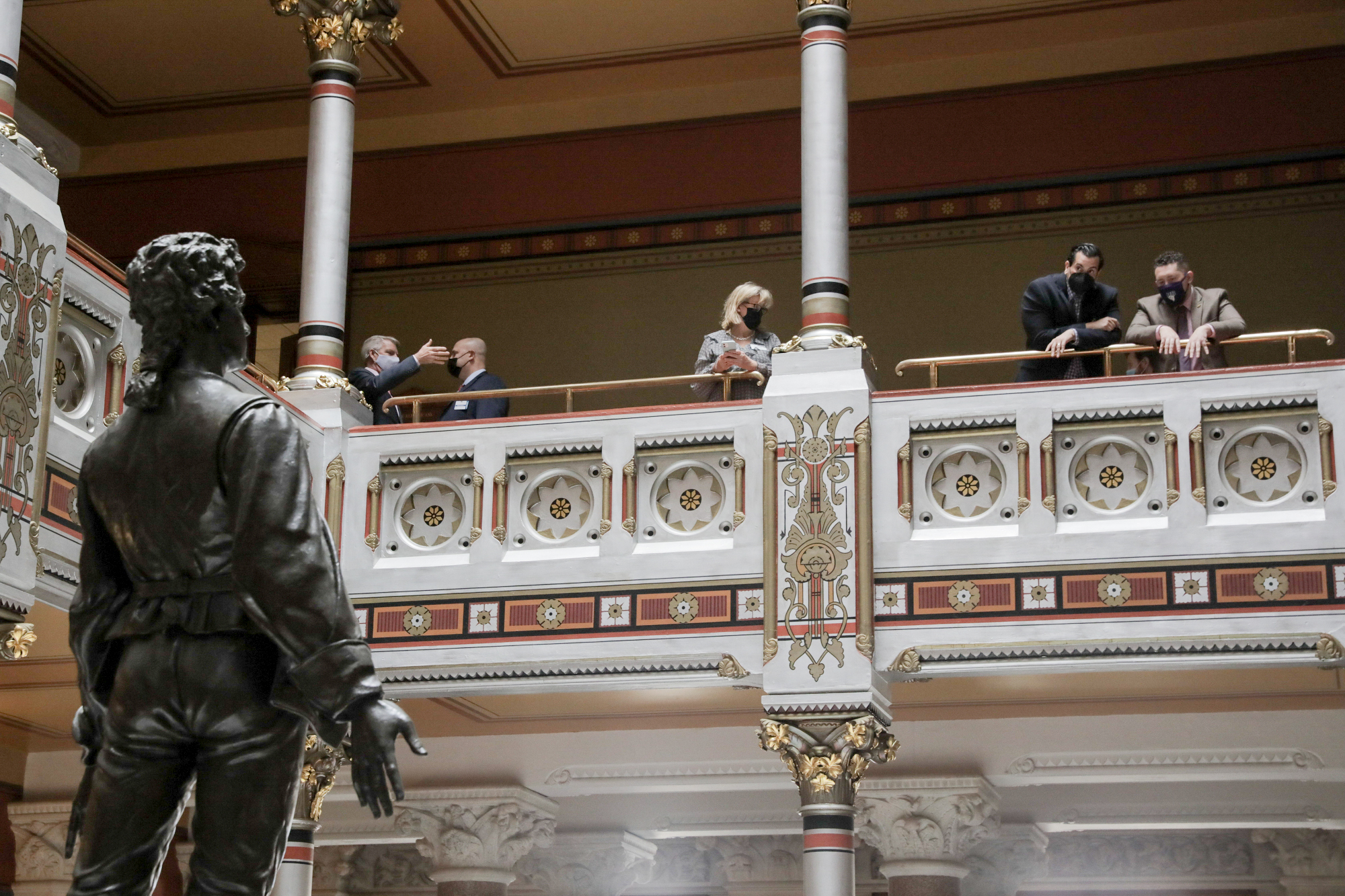 20220302_Session_Hartford_YK_097 Lobbyists have a conversation on the second floor of the state Capitol in 2022. Credit: Yehyun Kim / ctmirror.org