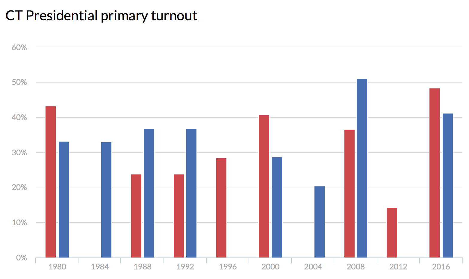 The overall turnout for the presidential primaries in April was higher than Connecticut has seen in at least 40 years.
