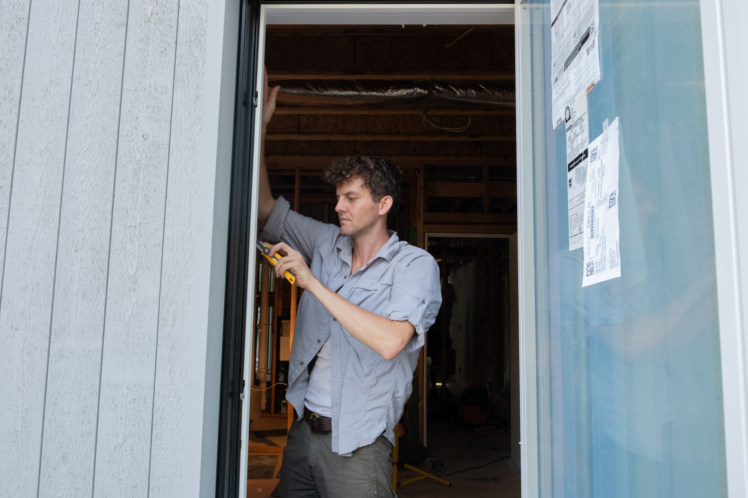 Peter Martinka, 25, works on the windows. Peter Martinka, 25, finishes work on the windows. Credit: Shahrzad Rasekh / CT Mirror