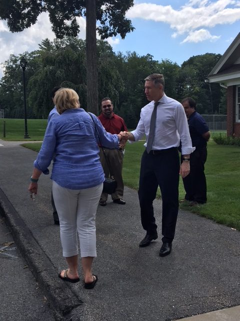 Republican gubernatorial candidate Bob Stefanowski shook hands with office workers at the pre-Labor Day picnic that real-estate developer Robert D. Scinto throws for tenants and their employees at his office park in Shelton. Then Stefanowski retired to a borrowed office in Scinto’s headquarters to make calls for money, an activity that consumes about half his working day. “It’s part of the game.”