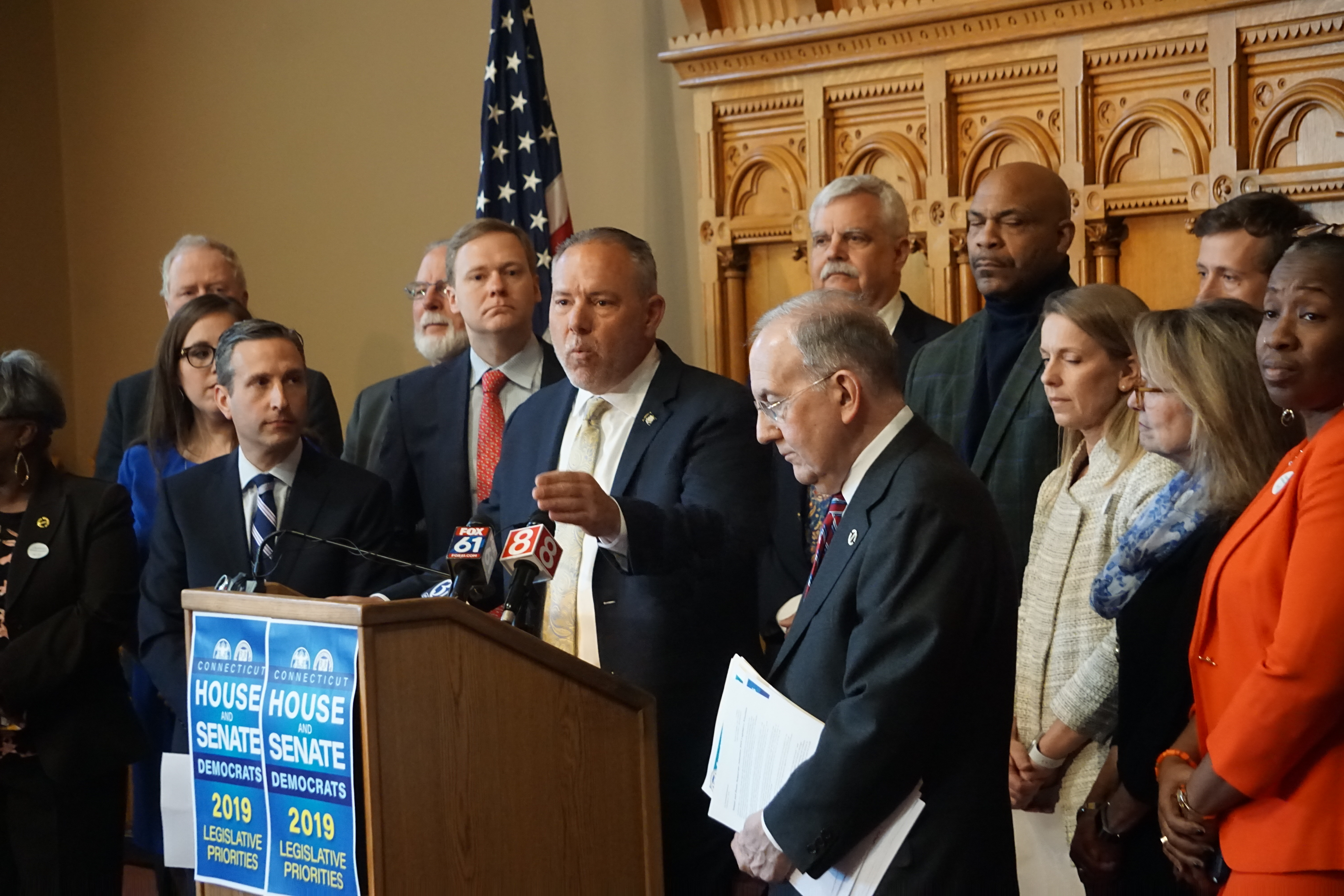 House and Senate Democrats topped their legislative agenda Monday with pledges to adopt paid family medical leave and a $15-per-hour state minimum wage.